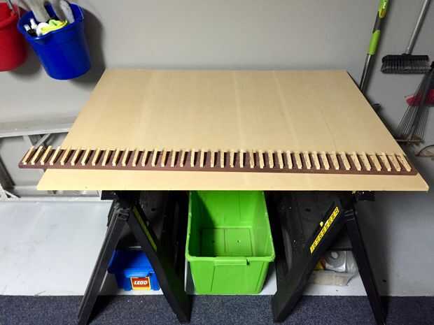 Entonces espaciadas las pinzas para la ropa. Quería darles un aspecto envejecido que usé una mancha gris en ellos.