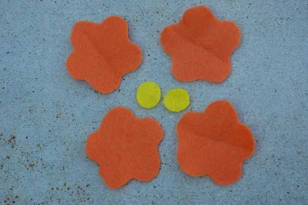 Flores corte 4 (por la pinza de pelo) y 2 círculos amarillos para el centro.