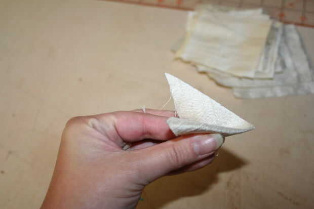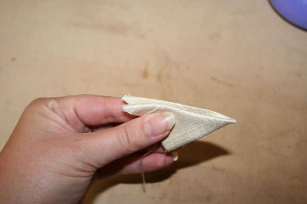 Recoger su triángulo y doblar por la mitad otra vez. Prensa de dedos el pliegue. Ves, te dije que era fácil!