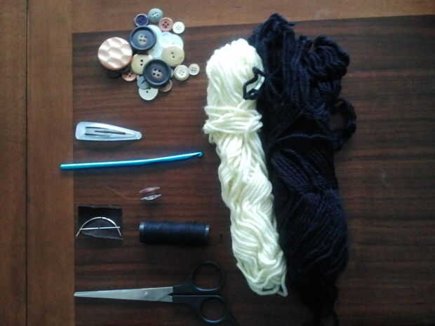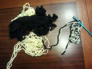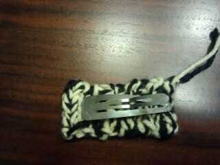 PRIMERO EMPIEZAS CON TEJER UNA CADENA DE 7 ENLACE CON EL HILO. HACER RONDAS POR TIRAR EL HILO A TRAVÉS DE UN VÍNCULO, ALTERNANDO LOS COLORES QUE TIRA A TRAVÉS. SIGUES HACIENDO RONDAS HASTA LLEGAR A LA LONGITUD DESEADA QUE USTED DESEA. TIENE QUE SER LO SUFICIENTEMENTE GRANDE COMO PARA CUBRIR EL CLIP.
