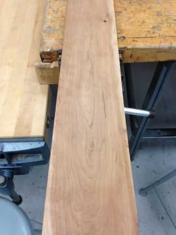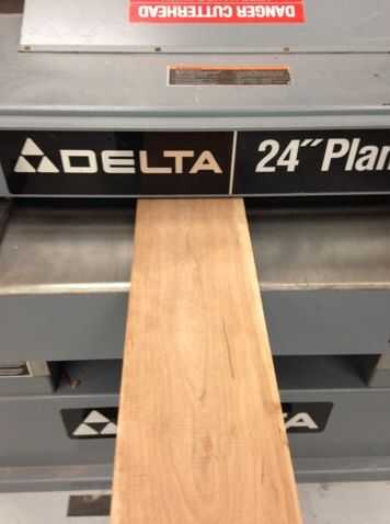 El siguiente paso fue encontrar la madera y cortado a la medida. La pieza superior e inferior de la caja son 9/16" de espesor, y así planean la cereza (que era originalmente 3/4") hasta 9/16". El siguiente paso fue cortar mi largo deseado. Mi caja es 10,25" amplia y ya que usé un Shopbot para cortar las ranuras, corté dos piezas 16" de largo para que tuvieran algún material extra que pudiera/montaje del tornillo a la mesa. Después de hecho el Shopbot, corté a la medida exacta. A continuación, lijar las tablas a 220 y estaban listos para ser cortado por el Shopbot.