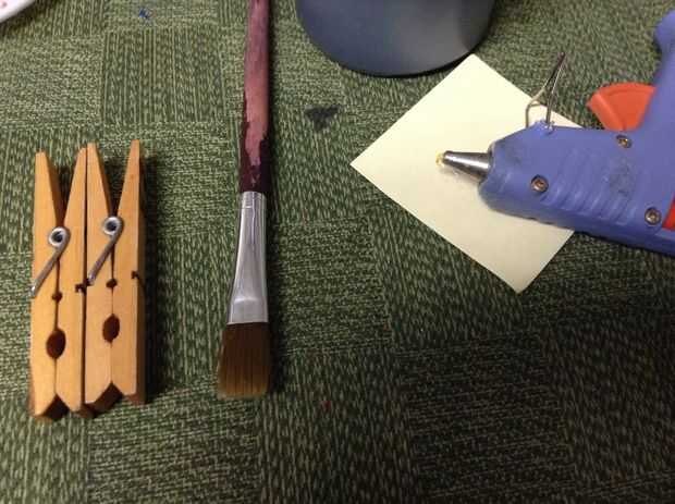 Necesita 2 ropa alfileres, pintura, un pincel y cosas para decorar. (cinta, botones, lentejuelas, pedrería etc...)