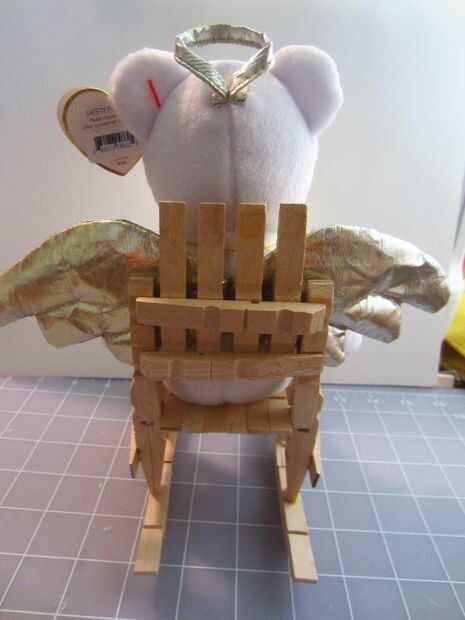 12. Anexe las patas al 2 balanceo piezas y tú mismo tienes una genial mecedora mini. Utilicé a un Beanie Baby en la mía pero deben encajar las muñecas tamaño Barbie también.