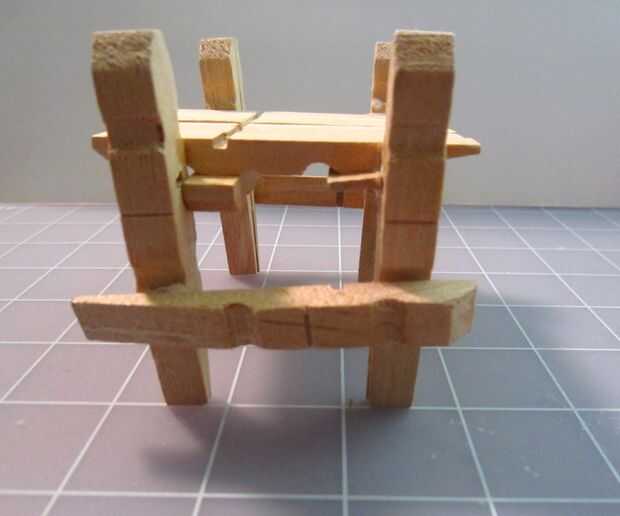 11. para realizar el sillón rock crear 2 piezas como se muestra en el cuadro 11. 2 pedazos empalmados juntos y pegados encima de la parte plana de una pieza de madera. Conecte las piezas principales en el corte hacia fuera de la ranura de la pieza inferior.
