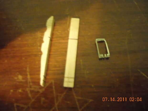 se necesita:Una pinza de ropa (madera)1 banda de cauchoHerramienta de corteHerramienta de la marca (opcional)Paso 1: Desarmar la pinza de ropa Simplemente deslice la parte superior de la pinza de la primavera. Y simplemente sacar el resorte. Ten cuid
