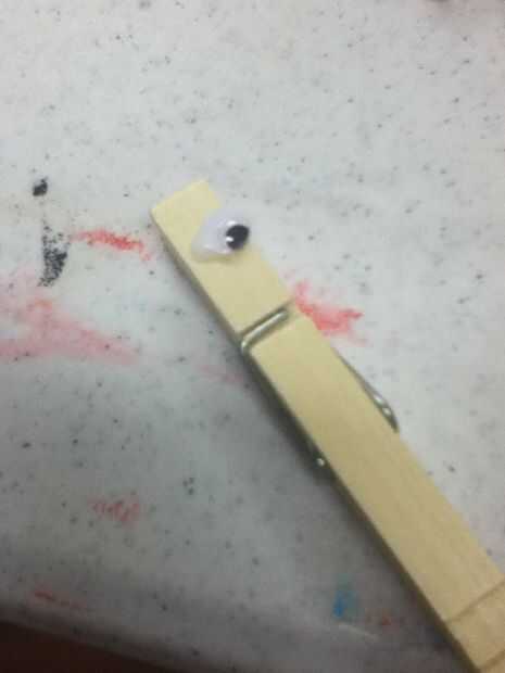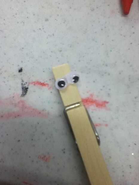 Pegamento en dos ojos saltones. Puede utilizar cinta de pato para hacer gafas si lo desea.