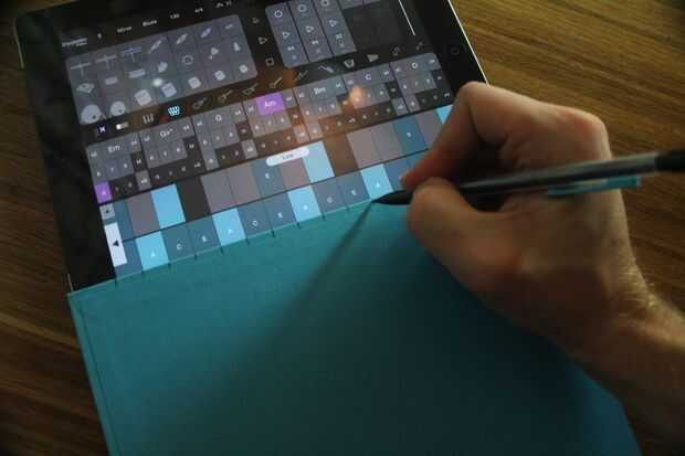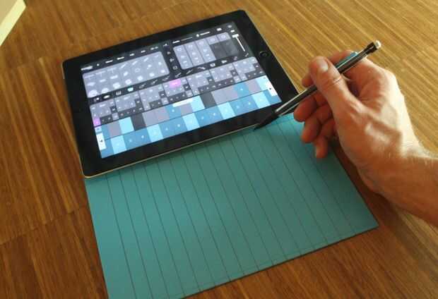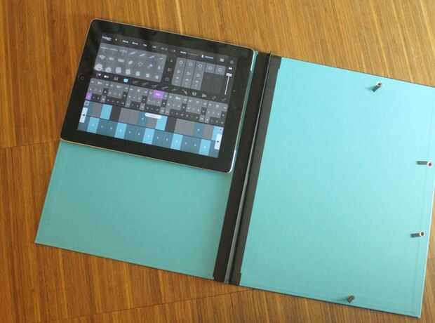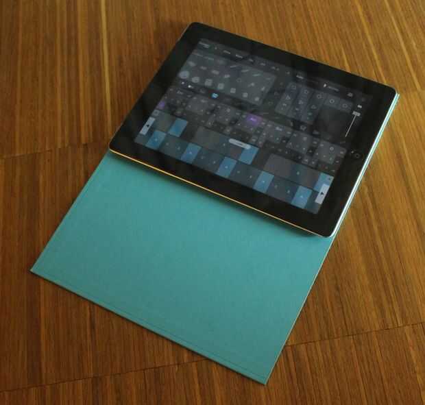 Poner el iPad en el material de cartón rígido y cortar a su tamaño, dejando una sección suficientemente grande como para aprovechar el teclado del piano.