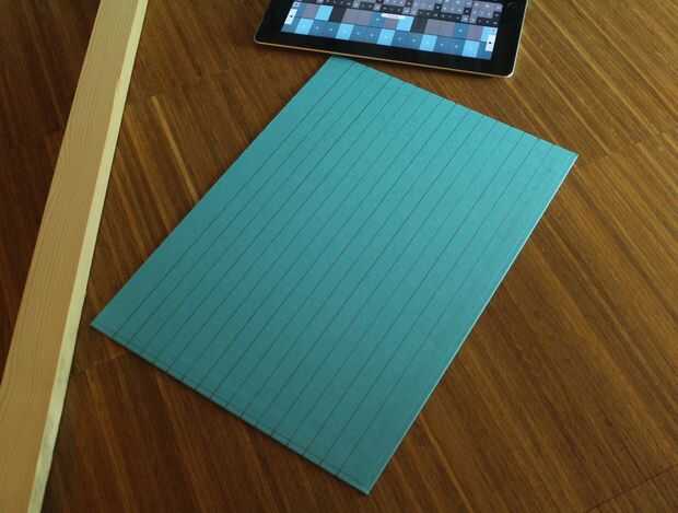 Poner el iPad en la parte superior del cartón y dibujar una línea de referencia en la parte inferior.