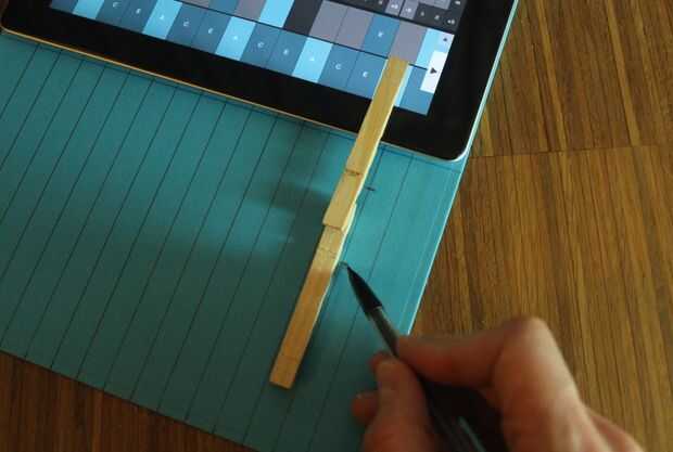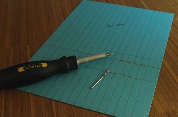 Hacer dos marcas, correspondiente a la ranura en cada pinza la mitad (donde estaba el final de la primavera). Trace una línea en el teclado entero donde estaban esas muescas, como referencia para las demás teclas.