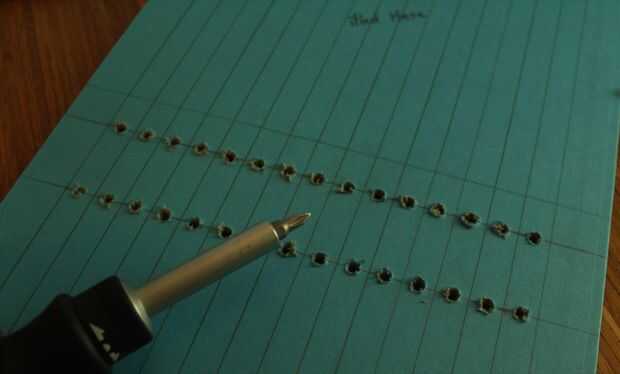 En la línea de la ranura y en el centro de cada clave, haga una marca para los agujeros de la goma.