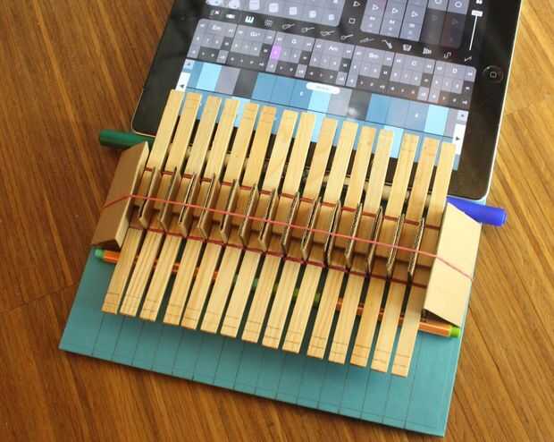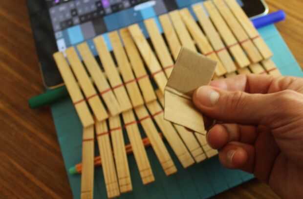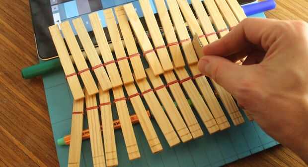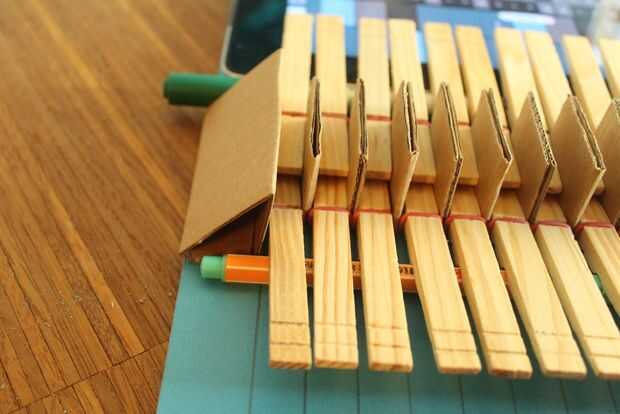Colocar lápices o marcadores en la parte redonda de las pinzas para apuntalar a.