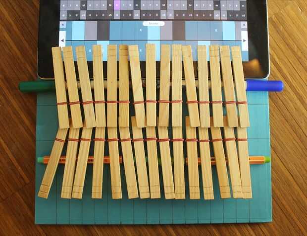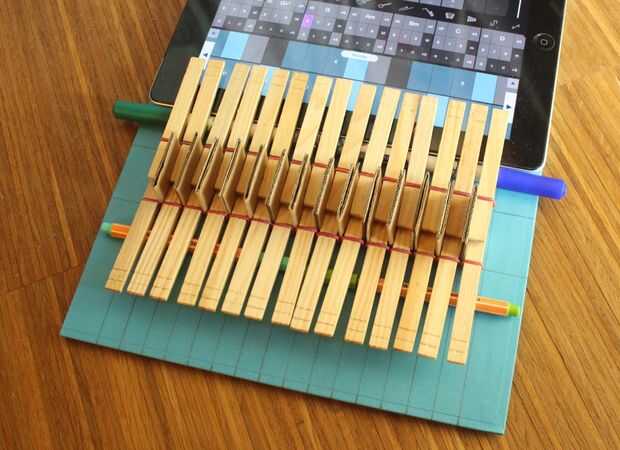 ¡ Hurra! Ahora tienes un montón de pinzas para la ropa, todo sostenidos a la cartulina base con bandas de goma.