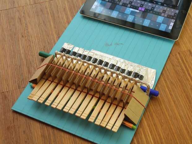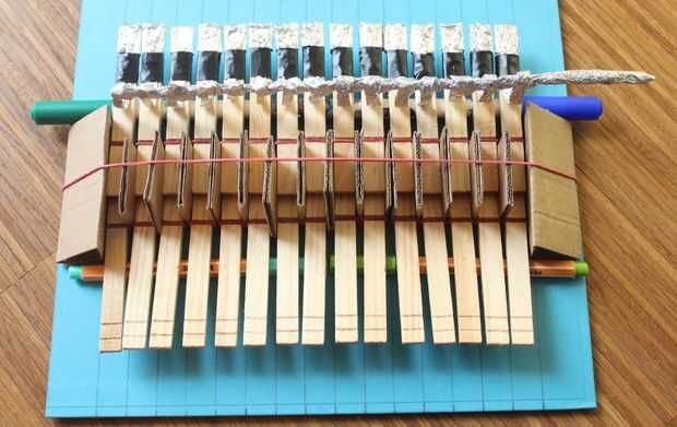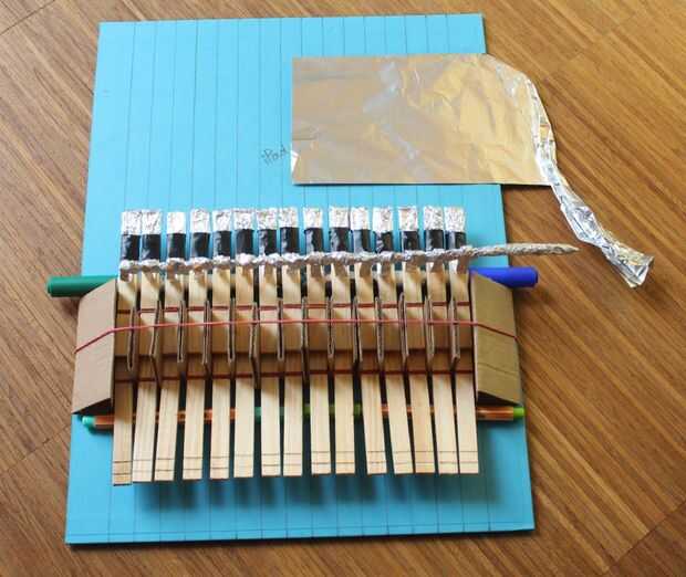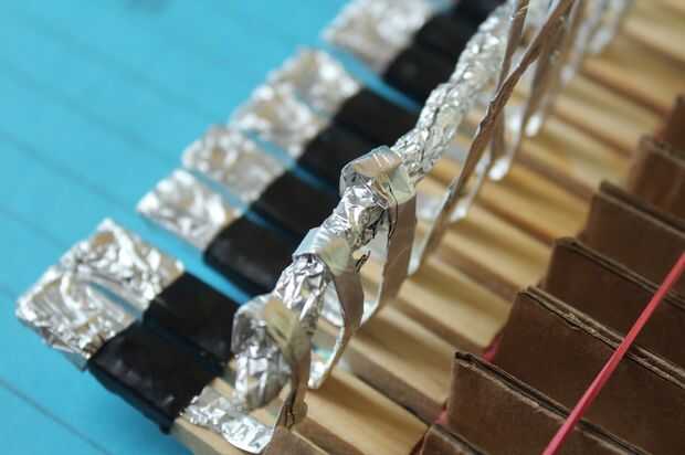 Así que hacer otro rectángulo de papel de aluminio y coloque un extremo en el base de cartón, en el iPad. Luego gire el otro extremo y conecte a la hoja que une todas las llaves.