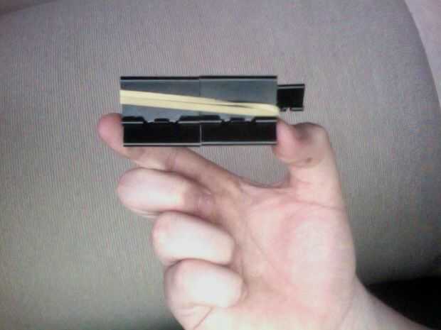 ahora otras versiones de esto utilizan la banda elástica en el interior. personalmente me gusta lo del lado de afuera porque no se puede cambiar la goma si se rompe sin desarmar el arma.