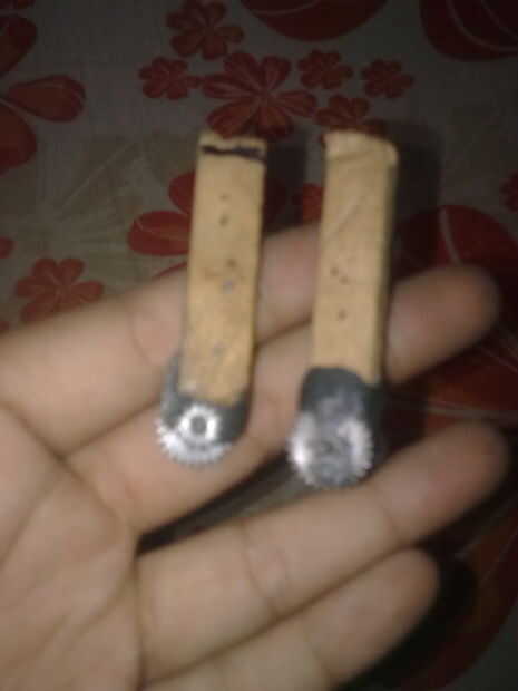 ahora se unen las varillas de madera a los engranajes como se muestra en la imagen.