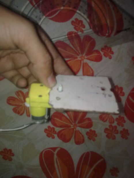 ahora hacer orificio en la placa de madera igual tamaño del eje del motor.