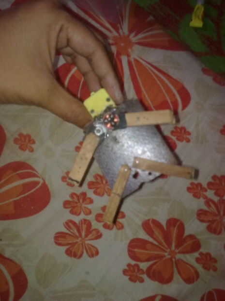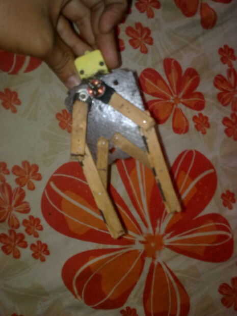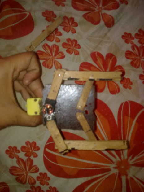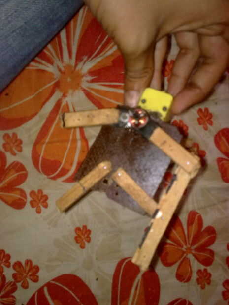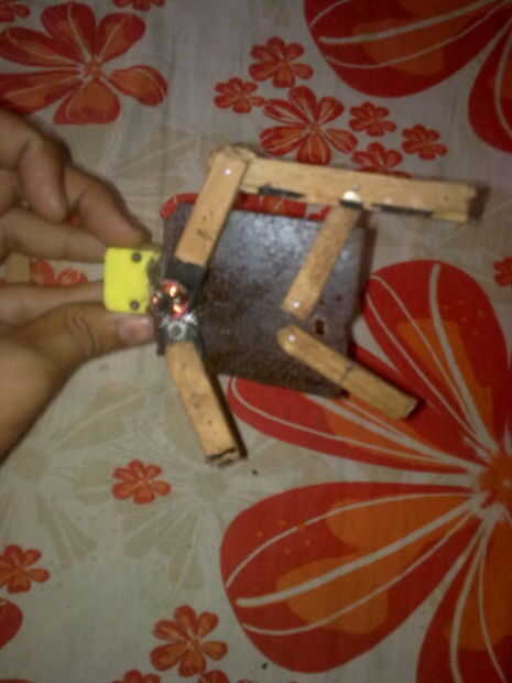 ahora montar un engranaje en el eje del motor y otro engranaje en una barra de metal y montar esa barra en placa de madera como se muestra en la figura. Este ensamble hace girar pares.
