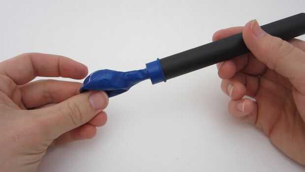 Seguir añadiendo café. Periódicamente, establecer el globo dentro del embudo para comprobar su tamaño. Quiere el balón sobresalga aproximadamente una pulgada más allá del borde del embudo. Una vez tengas suficiente café en el globo, puede quitar el balón del tubo.