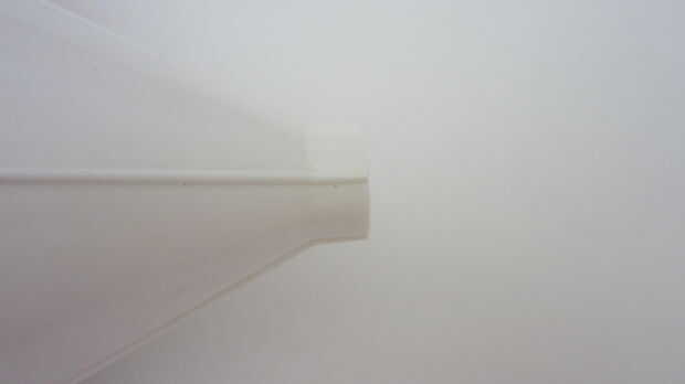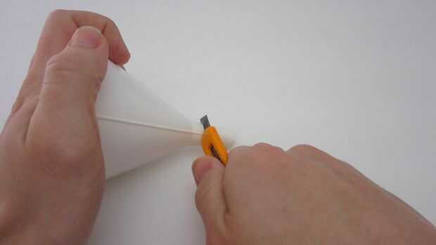 Así que para hacerlo más fácil, cortar la sección estrecha del embudo para que sea sólo 1/2 pulgada de largo. Puede hacer esto con cualquier cuchillo. Después de cortar el embudo tratar suave de los bordes ásperos.