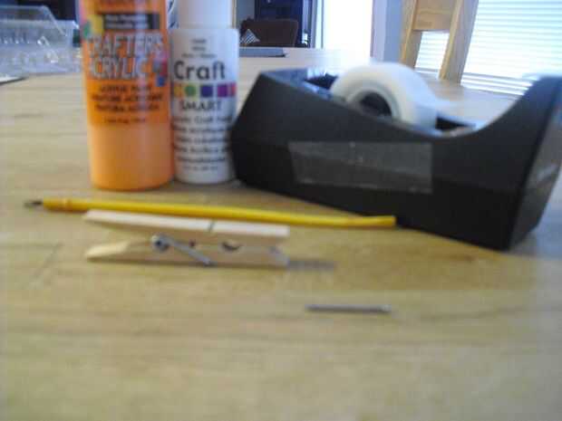 La mitad de cada una de las pinzas para la ropa actúa como el cuerpo de la embarcación. El clavo se utiliza como el mástil y la cinta scotch como la vela. La pintura es puramente estética, pero es muy recomendable para dar al barco un final agradable.