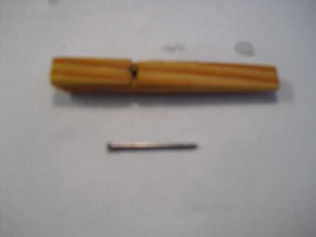Hacer un agujero en la pinza para la ropa con la uña en la ranura de la parte plana de la pinza para la ropa. Prueba y conseguir como cerca de la mitad como sea posible, así que el barco está equilibrado y no caiga en el agua. Puede utilizar un martillo o realmente cualquier objeto pesado para hacer esto, ya que es un clavo muy pequeño. Retire el clavo de una vez esto hecho.