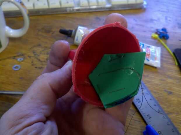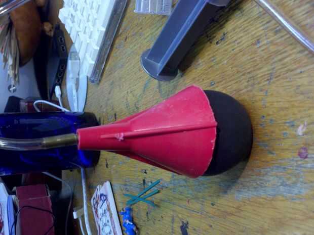 He añadido un embudo para dar el balón y alguna estructura de la tubería. Tomé el pequeño embudo tenía y utilizar una sierra para metales para cortar más corto. De esa manera el globo podría cuelgue libremente, pero con apoyo cuando se presiona contra el objeto para ser recogidos.