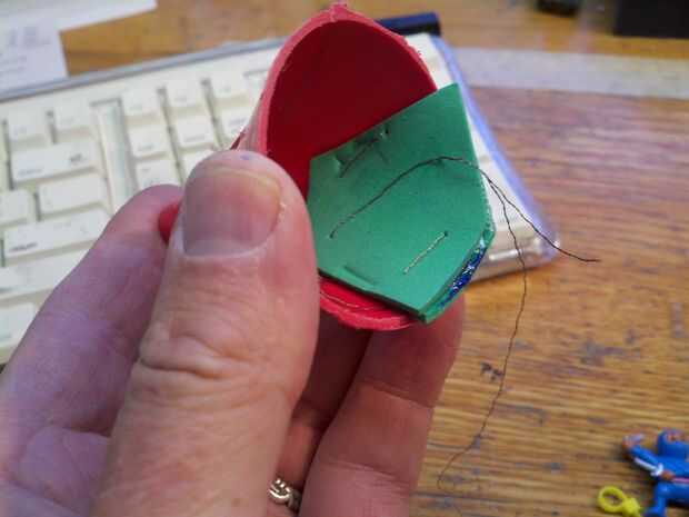 Decidí poner un sensor de presión de la tela en el embudo. De esa manera el Arduino controla el servo podía sentir cuando se aplicó suficiente presión al balón. Plusea tiene un gran Instructable describiendo cómo crear presión y sensores de la curva. Estos sensores pueden ser muy sensible y también muy exacto en la lectura de presión o de flexión.