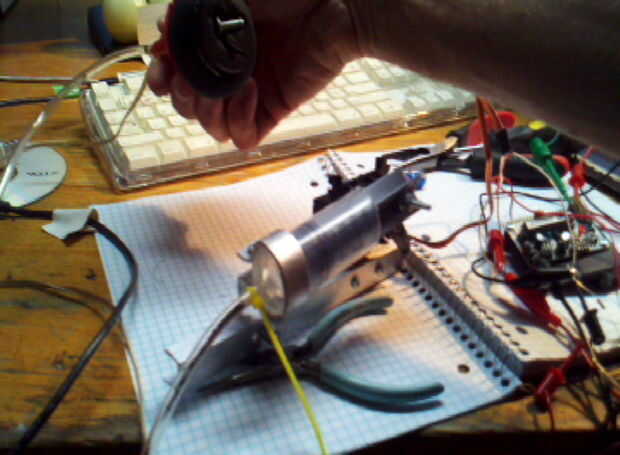 Código lee el sensor de presión, y cuando se aplica suficiente presión se activa el servo. El Arduino espera 2 segundos y luego empuja el émbolo hacia atrás en el barril que quitar el vacío.