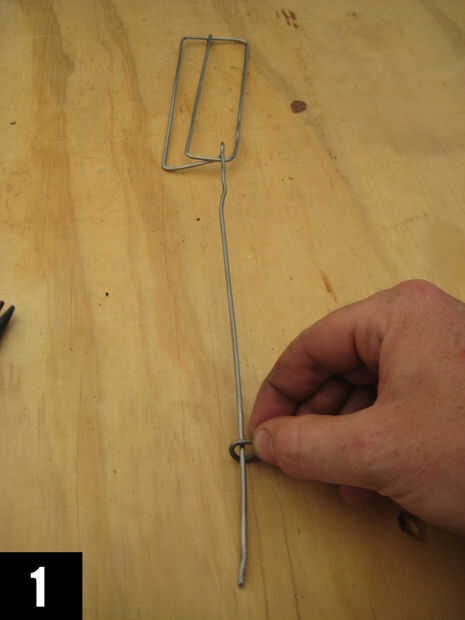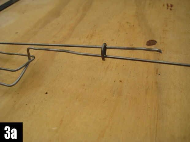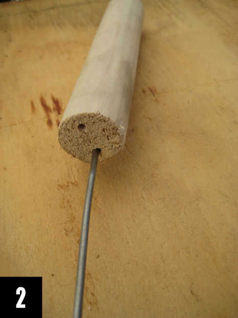 2. Coloque el extremo de la manija del alambre de la parrilla inferior en el orificio de la parte inferior de la madera. Si es suelta, se