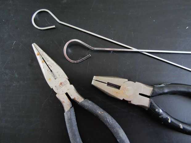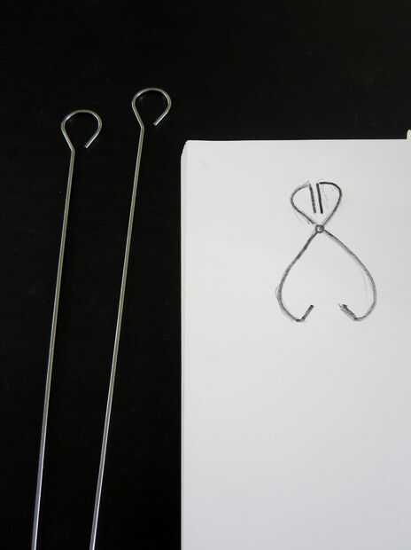 Encontré que los pinchos del bbq tenían la forma perfecta para empezar a trabajar con contemplada un lazo bonito dedo. Usé unos baratos de la tienda del dólar ya que eran un poco más delgado y más fácil de doblar.