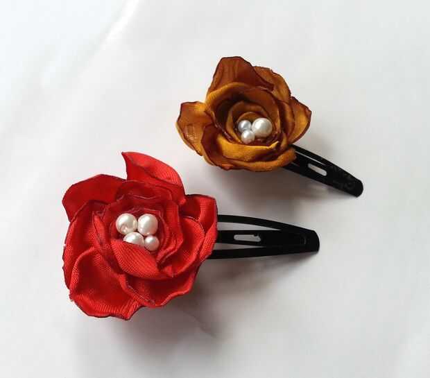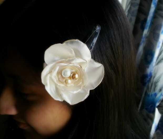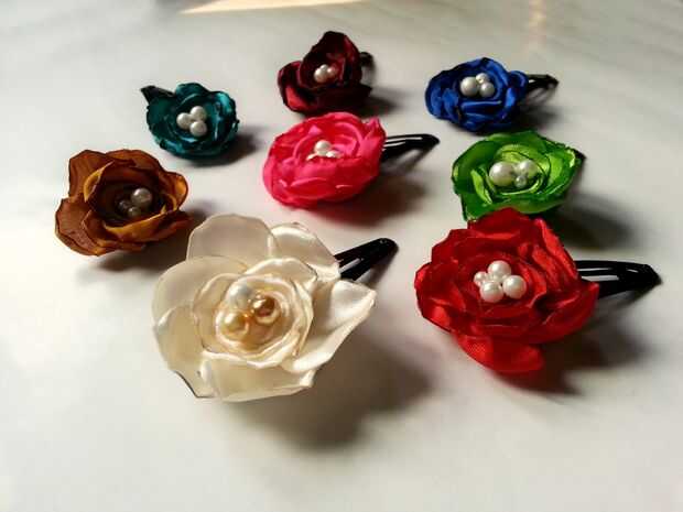 Tela del satén ha sido realmente útil para la fabricación de joyas, como pendientes, anillos, flor de collar. Esta vez estuve en accesorios para el cabello flor de Satén. Tenía telas de raso, así que no podía esperar para hacer algunos clips de pelo floral.