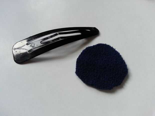 Introduzca el fieltro redondo / paño grueso y suave a tela en el clip a través de los cortes (como se muestra en el cuadro 3 de este paso) y pegar con el clip.
