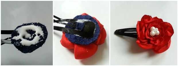 Ahora, simplemente coloque la flor en la parte superior del fieltro / paño grueso y suave a tela con pegamento (cola blanca o pegamento caliente).