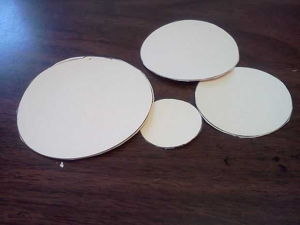 Corta 4 a 5 círculos de cartulina gruesa o cartón (utiliza archivadores viejos y doble pegado).  Asegúrese de que todos los círculos son de distintos tamaños (exacto hace un transportador de corte ahora... sólo un fyi).