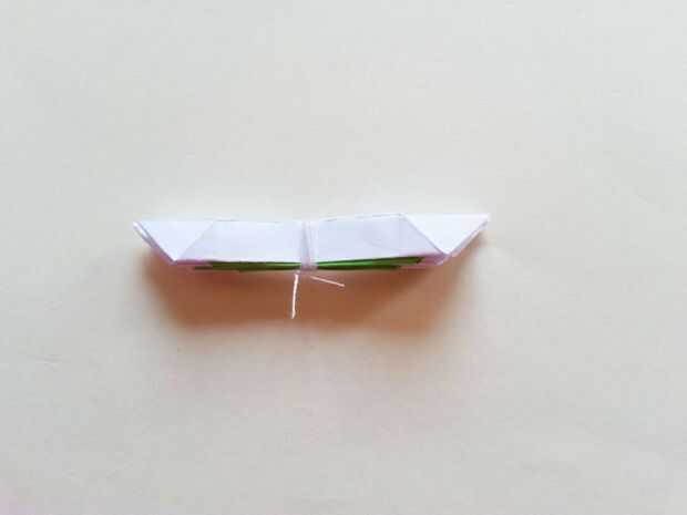 Aplanar las tres formas escondidas y apilarlos de lado a lado. Use hilo para unir las formas en el medio, asegurándose de que estén obligados firmemente.