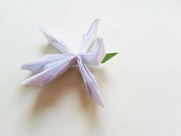 Cuidadosamente doblar un pétalo por la mitad, en sí mismo para que está parado vertical y revela la hoja verde por debajo. Hacer esto una vez más para los 5 restantes pétalos. En este punto puede también alisar las hojas ligeramente en una forma más realista de la hoja.