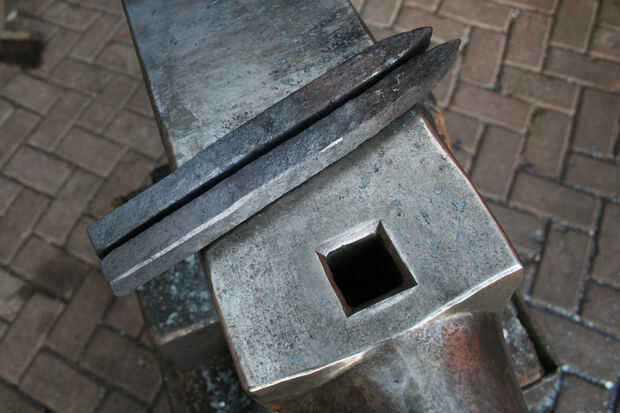 Fragua el extremo de la barra que estaba anteriormente era el jefe en una sección que trata de 3/8 "x 3/4"-10 mm x 20 mm.
