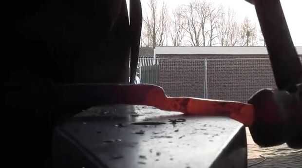 borde del yunque y la forja esta hacia abajo aproximadamente 1/3 del camino hacia abajo. Este es el el primer set abajo.