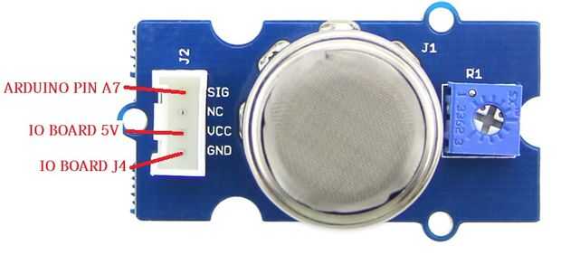 El suelo del sensor de gas está conectado a la tarjeta IO, dando la posibilidad de encender y apagar mediante un transistor TIP31.