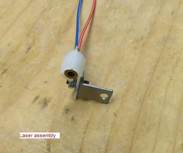 El Laser trabaja igual que la linterna. El cable rojo está conectado a 3v en el tablero de IO y tierra es conectado al J1 en el tablero de IO.