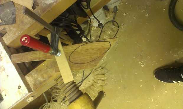 Coloque la madera en algo estable y fijarlo con la abrazadera hacia abajo duro para que no se mueva. Recórtela con una sierra de calar con una hoja áspera para la madera. La más áspera la hoja de la lija más usted tendrá que hacer. Si tienes una sierra de cinta corte hacia fuera con eso porque será más preciso.