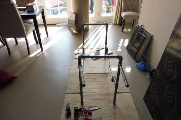 Necesitaba un lugar para poner mi estereo y mi tocadiscos. Busca en tiendas de muebles diferentes, no pude encontrar nada que parecía que tenía en mente. Así que decidí hacer mi propio.Materiales2 x falta de IKEA mesasbarras roscadas de 2 x 1m M1816