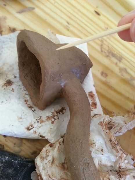 Agua tanto para el tubo y el agujero en la parte principal y presionándolas juntas y empujando algunas arcilla del tubo a la parte principal que vienen juntos.