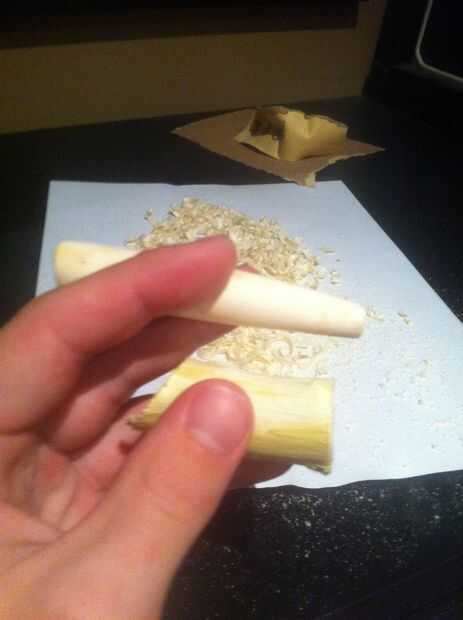 Coge tu navaja y asegúrese de que la cuchilla está afilada. En este punto se debe tomar unos guantes resistentes al corte. Sólo en este punto sin embargo. Nunca use guantes durante la perforación. Este paso es la interpretación del fabricante. Usted elige cómo desea el tubo para ver. Si nunca han tallado antes, use movimientos largos. Mantener el ángulo de la hoja muy cercano de la madera. Asegúrese de no cavar grandes trozos de la madera y para sacar virutas largas superficiales. Trozos grandes sólo embotado su cuchillo y hacerla más difícil de tallar. Asegúrese de que a afilar su cuchillo si nota que el corte es cada vez más difícil. Obviamente, ten cuidado, no corras con cuchillos, no cortan hacia vosotros mismos. Use el sentido común.