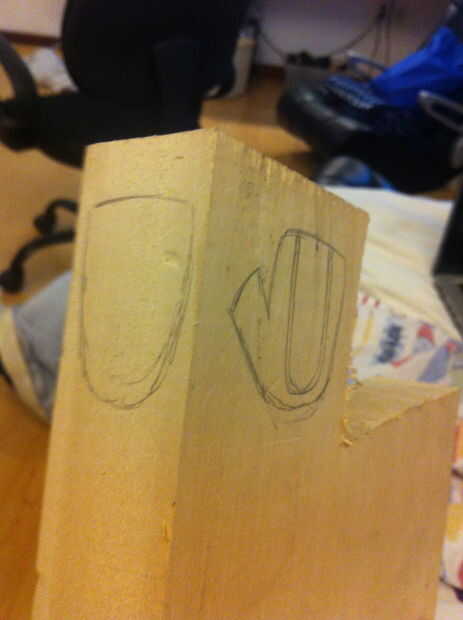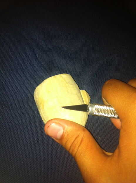 Dibujar la plantilla en la madera y tallar hacia fuera la taza.