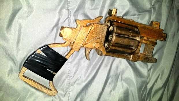 Hice esta arma para mi esposo que quería ser Nick Valentine para la Comicon de Phoenix. Más adelante publicaremos su atuendo.