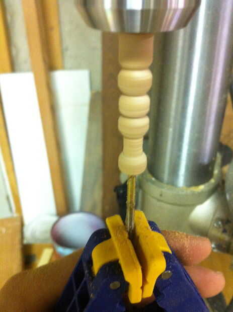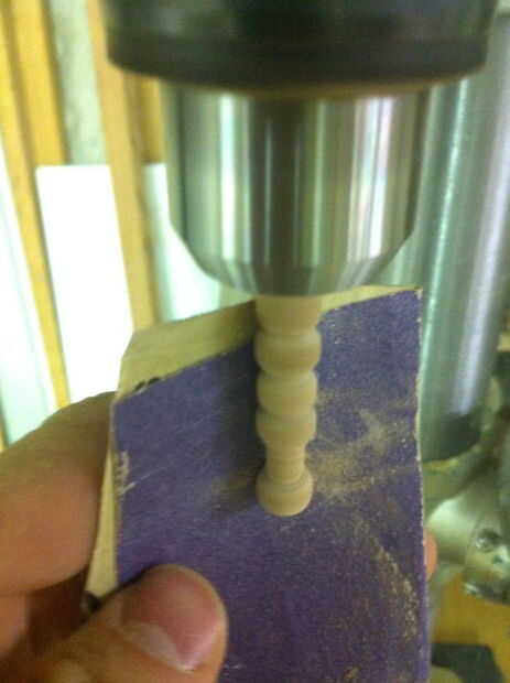 Porque no tengo un torno, pegué el pasador en la prensa de taladro sí mismo como un otro poco y torneados verticalmente. No dude en ser creativo ahí va no mal con este paso como no corte en la boquilla.