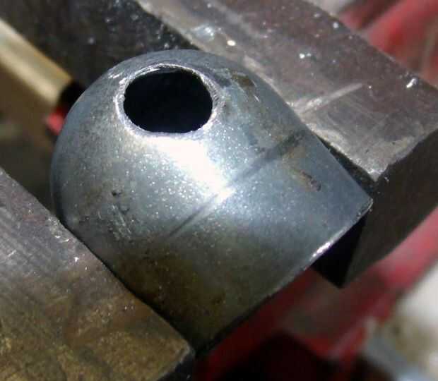 En el borde de la parte inferior curvada del tazón de fuente, hacer unos nicks luz con un disco de corte en la superficie como se muestra. Esto es para crear una chuleta para evitar que la broca resbale.