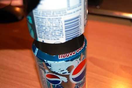 Inserte la parte superior de la primera lata en el segundo puede.
