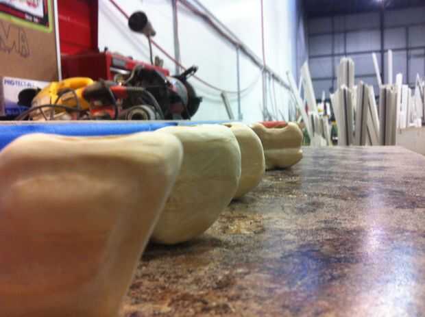 Cabinz, un grupo de la comunidad de Reino Unido. Han reutilizado 2 metros piel de fibra de vidrio Grp / upvc base recortes de una fábrica de puerta compuesta que normalmente se depositen en un vertedero como basura.Esto es un fuego, putrefacción y ma